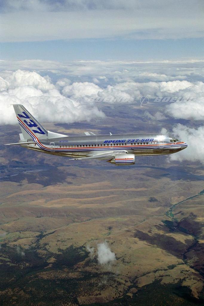 Although it has the largest model designator of its generation, the 737-500 is actually smaller than either the 737-300 or the 737-400. The 737-500 is 101 ft 9 in long and can seat up to 132 passengers in an all-economy configuration. It was built to replace the 737-200. About the same size as the 737-200, it is the smallest member of the 737 family, but uses all the advanced technologies of the larger 737-300 and 737-400 models. The 737 family of jets share the reliability, simplicity, family commonality, and low maintenance costs that have made the 737 the favorite of the world's airlines.