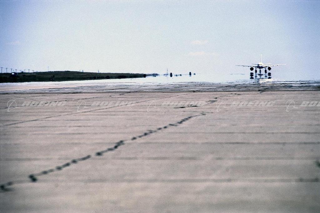 The twin-engine, medium-range Boeing 757 commercial transport first flew Feb. 19, 1982 and is up to 80 percent more fuel efficient than the 727s it was designed to replace but retains the 727's short-field capability. The 757-200, also offered as a freighter, can carry 239 passengers, in two classes, up to 4,520 miles. In September 1996, Boeing launched the 4,000-mile-range 757-300, a stretched model that seats from 243 to 279 passengers. By 1999 Boeing had delivered more than 1,000 757s. Four 757s were modified as replacements for the older 707-based VC-137 executive transports for government officials and designated C-32As.