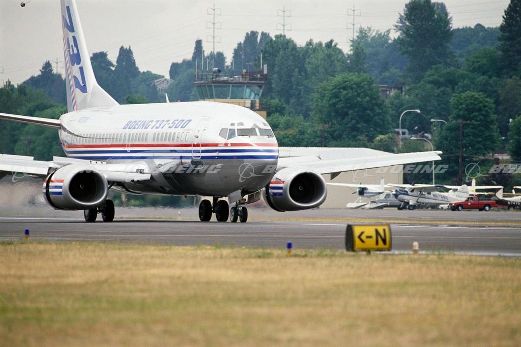 Although it has the largest model designator of its generation, the 737-500 is actually smaller than either the 737-300 or the 737-400. The 737-500 is 101 ft 9 in long and can seat up to 132 passengers in an all-economy configuration. It was built to replace the 737-200. About the same size as the 737-200, it is the smallest member of the 737 family, but uses all the advanced technologies of the larger 737-300 and 737-400 models. The 737 family of jets share the reliability, simplicity, family commonality, and low maintenance costs that have made the 737 the favorite of the world's airlines.