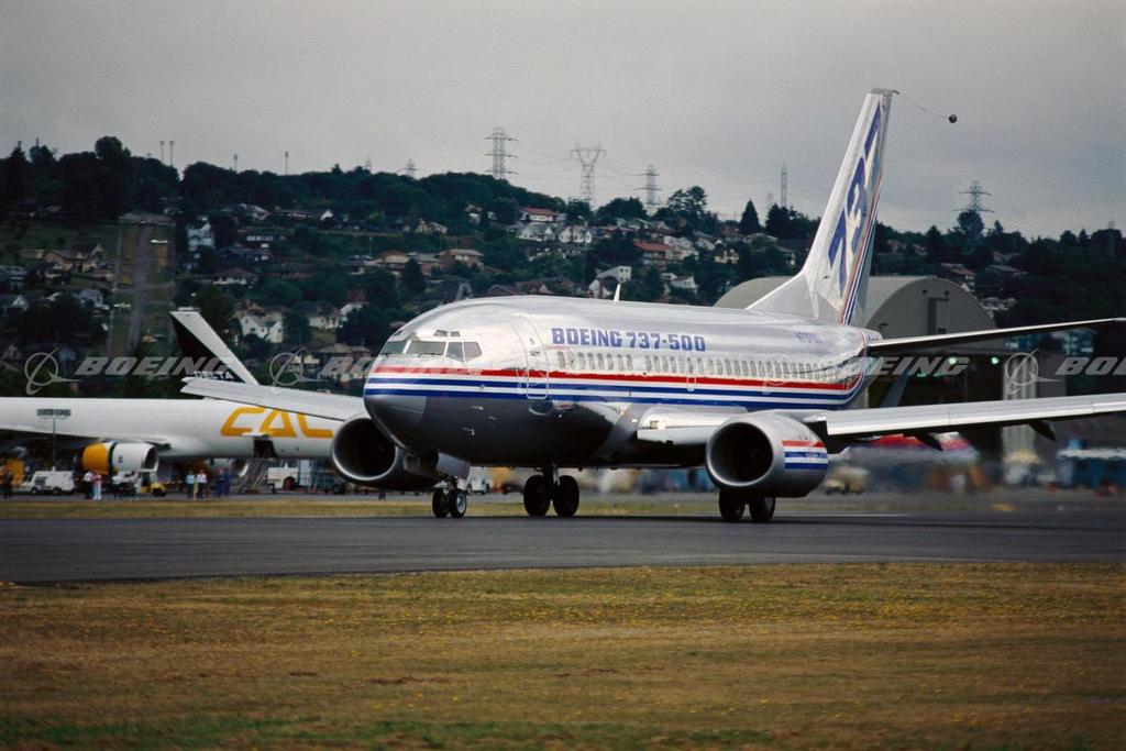 Although it has the largest model designator of its generation, the 737-500 is actually smaller than either the 737-300 or the 737-400. The 737-500 is 101 ft 9 in long and can seat up to 132 passengers in an all-economy configuration. It was built to replace the 737-200. About the same size as the 737-200, it is the smallest member of the 737 family, but uses all the advanced technologies of the larger 737-300 and 737-400 models. The 737 family of jets share the reliability, simplicity, family commonality, and low maintenance costs that have made the 737 the favorite of the world's airlines.