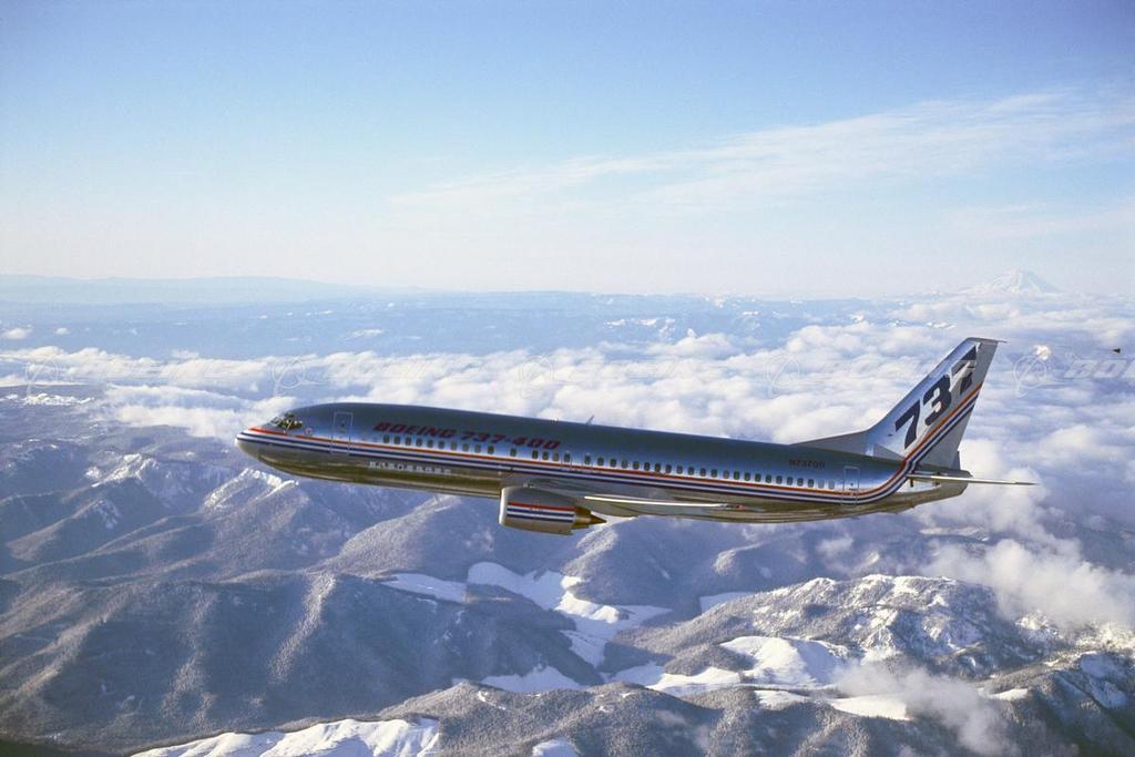Development of the quieter, more fuel-efficient CFM56-3 series of engines allowed Boeing to improve its most popular jetliners and produce the advanced-technology 737-330, -400, and -500. The engines are larger and mounted forward of the wing struts instead of tucked directly under the wing as in the -100 and -200 versions. Advancements on the new-generation 737s included a stregthened wing to accomodate greater gross weight, tip extensions to the wings and horizontal stabilizers, and stregthened wheels, tires and brakes. The 737-200, -300, -400, -500 have the same handling characteristics so that pilots can use the same Type rating to fly all of them. Airlines' spares inventory and maintenance are simplified by making a substantial number of replaceable parts on the -300, -400, -500 identical to those used on the -200. The 737-400 is about 10 feet longer than the 737-300. It holds 19 more passengers and has a gross weight of up to 150,000 pounds, while retaining the same fuel efficiency, low noise, and low operating costs as its predecessor.