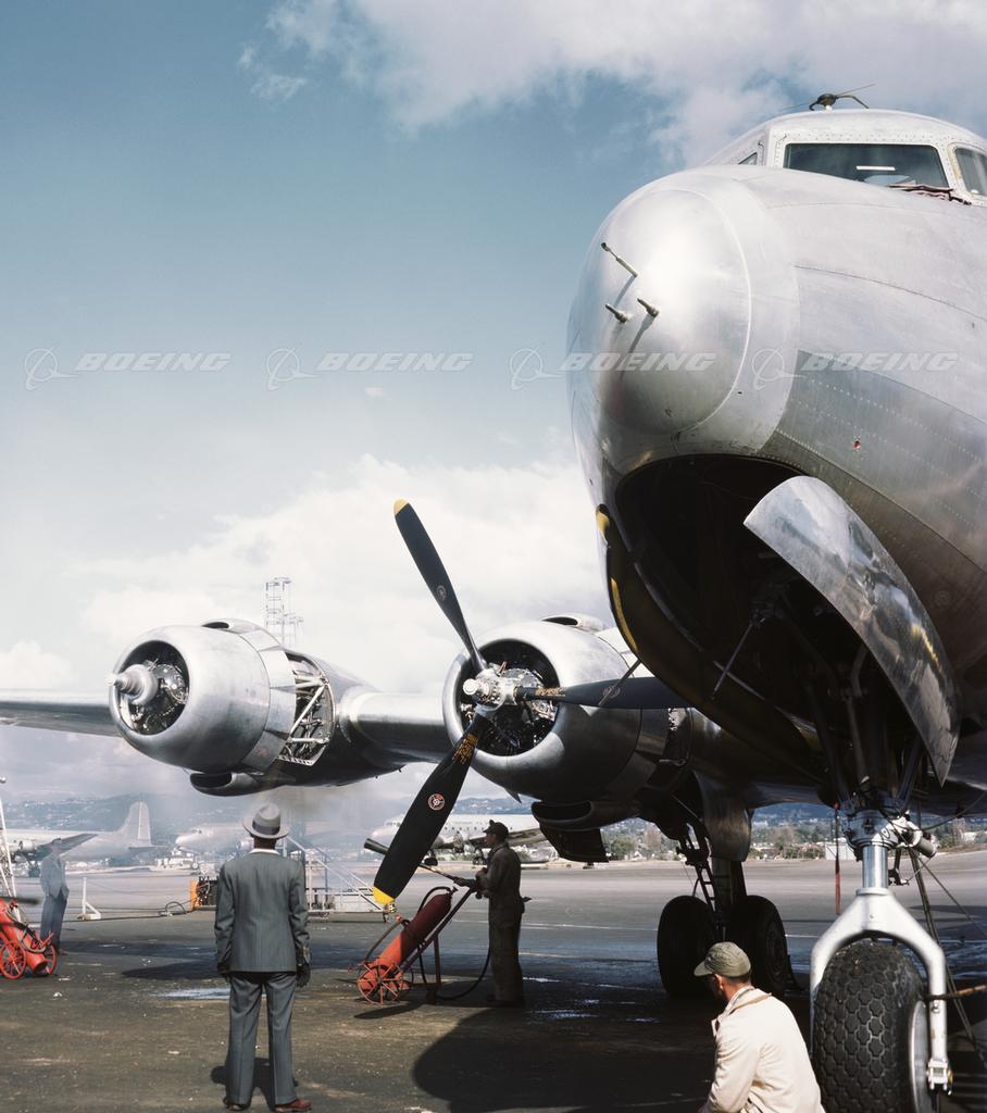 Douglas DC-6 (1946-1958): Nearly identical to the DC-4 in appearance, the DC-6 was first conceived as a long-range military transport. The plane made its maiden flight on February 15, 1946. The key difference between the DC-4 and DC-6 was the DC-6’s larger engines, which were twice as powerful as the engines on the DC-4. The DC-6 was the first Douglas airliner with a pressurized cabin, which enabled it to fly higher and faster, thus taking its passengers “over the weather.” The DC-6 was the most economical commercial aircraft of the propeller era. Its operating costs were among the lowest until jetliners came on the scene. Military versions were produced under the designations C-118 (Air Force) and R6D (Navy). President Harry Truman chose a DC-6 for official use, and christened it the “Independence,” for his hometown in Missouri. During its 12-year production run, Douglas delivered 537 DC-6s, plus 167 military versions.