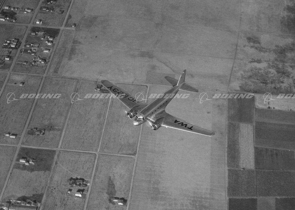 DC-1 in Flight Above Rural Area