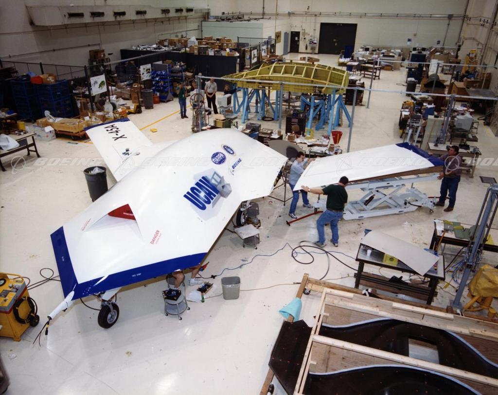 Technician Inspects the X-45A UCAV - Unmanned Combat Air Vehicle