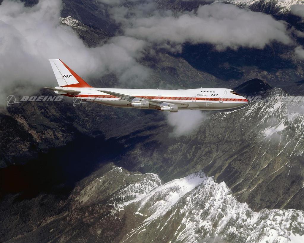 747-100 Painted as a 747-200 Flies over Snowy Mountains
