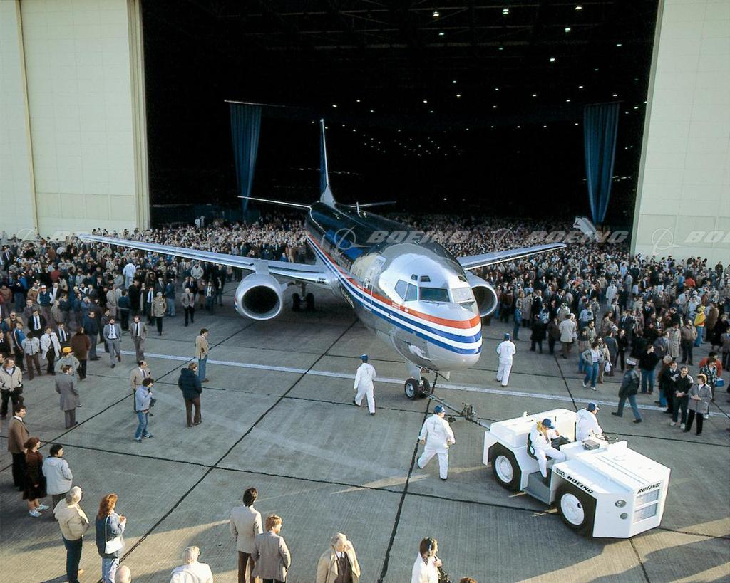 Crowd Surrounds the New 737-300 at its Rollout Ceremony in 1984
