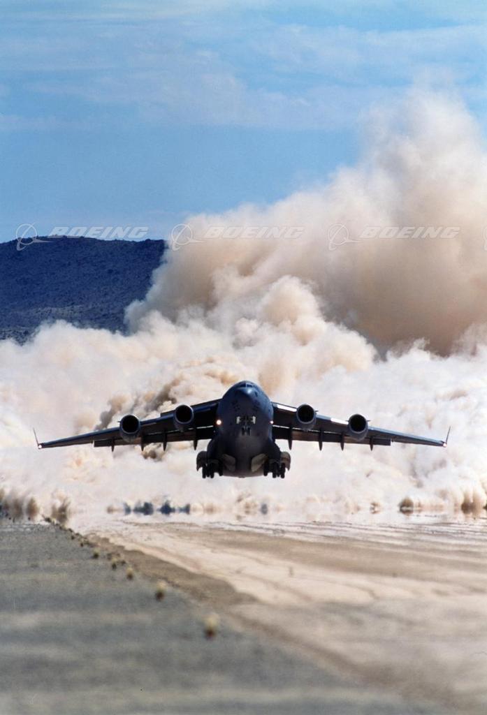 C-17 Globemaster III Landing in Dusty Lake Bed
