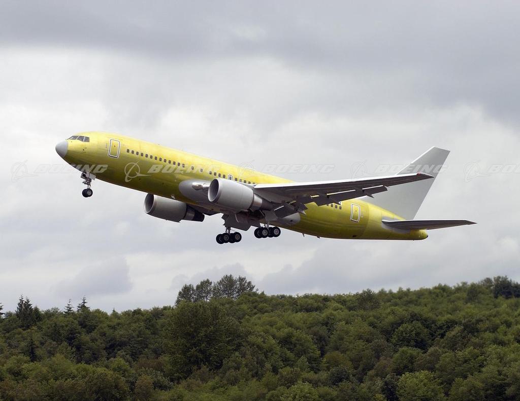 The first 767 Global Tanker prepares to depart Everett to undergo final modifications at Boeing's Wichita facility.
