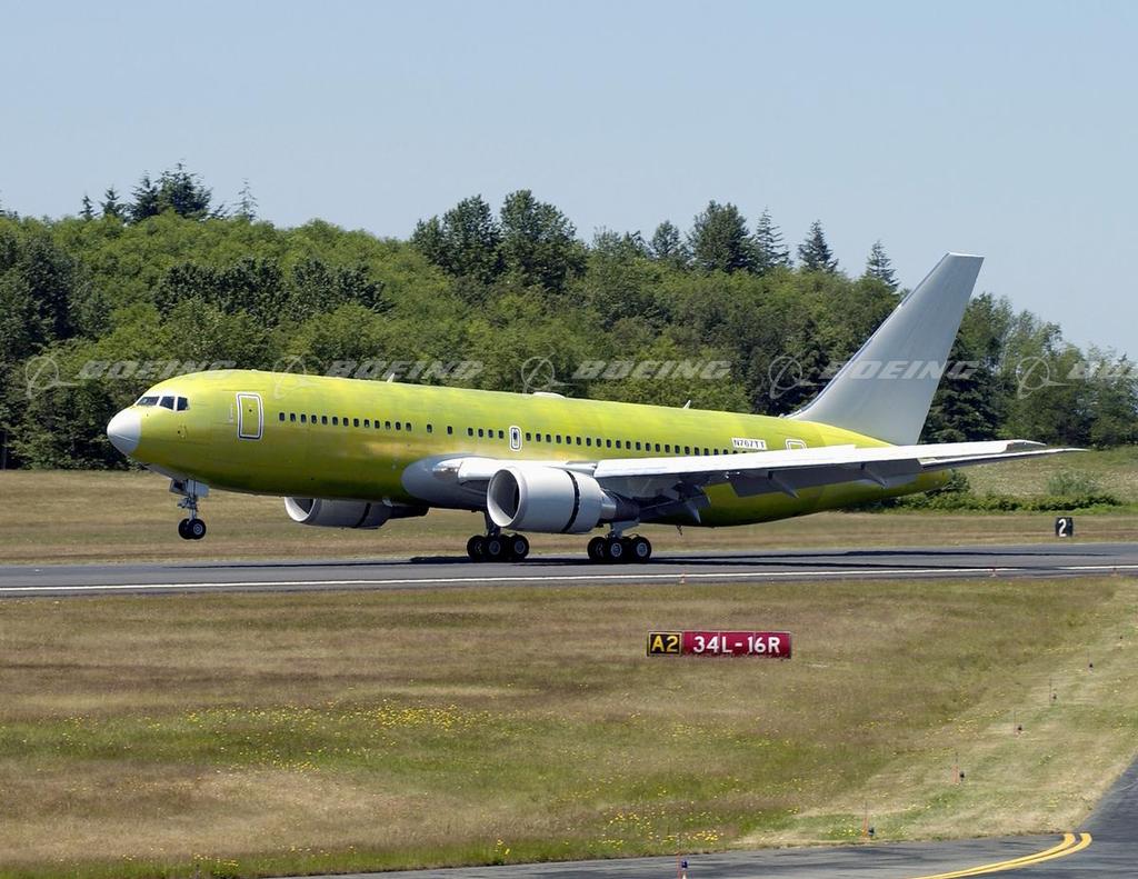 The first 767 Global Tanker prepares to depart Everett to undergo final modifications at Boeing's Wichita facility.