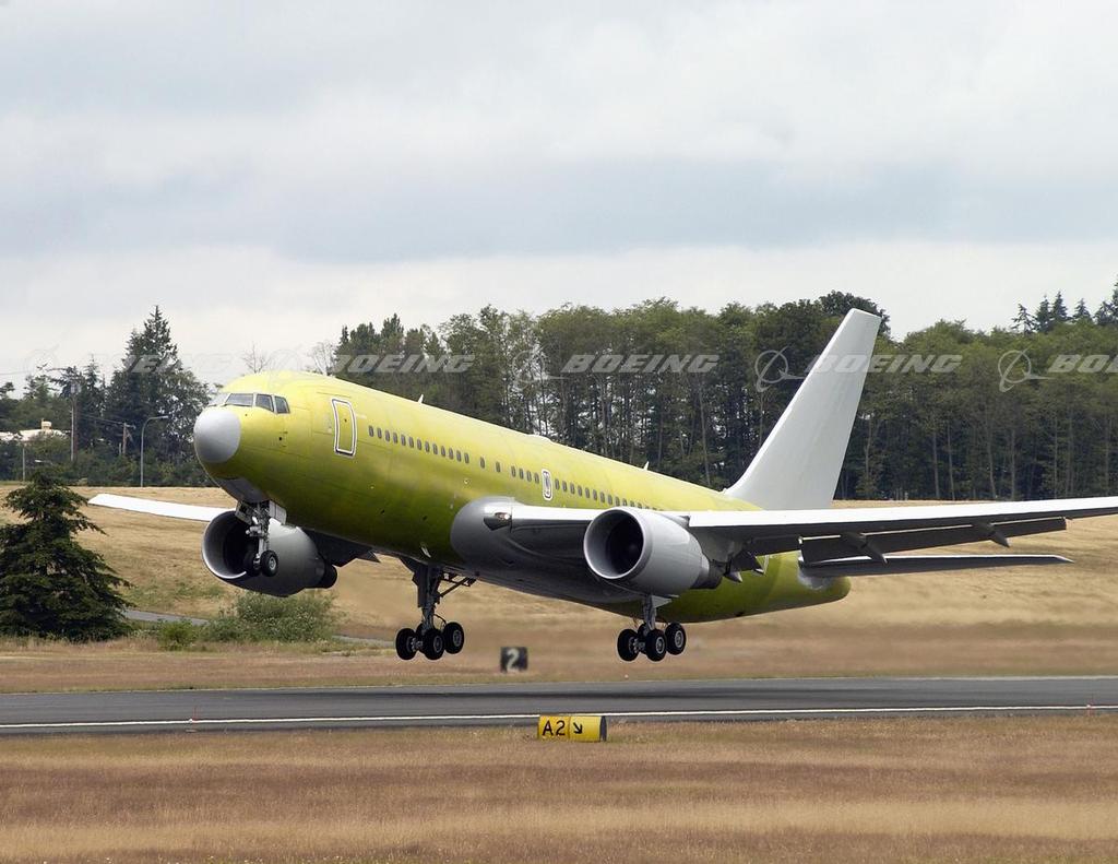 The first 767 Global Tanker prepares to depart Everett to undergo final modifications at Boeing's Wichita facility.