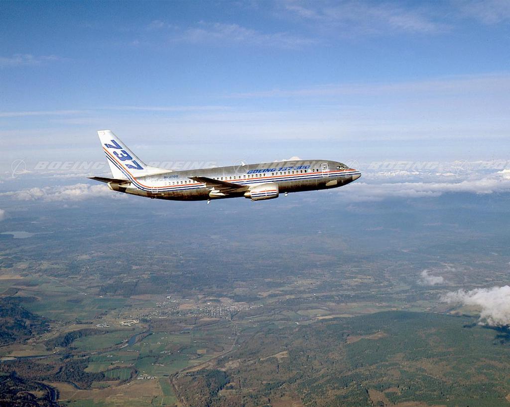 The 737-300 took advantage of a longer body, more efficient engines, an advanced-technology flight deck, and lightweight materials to make it the most economical new-technology twinjet in its class at the time of its first flight on February 24, 1984.