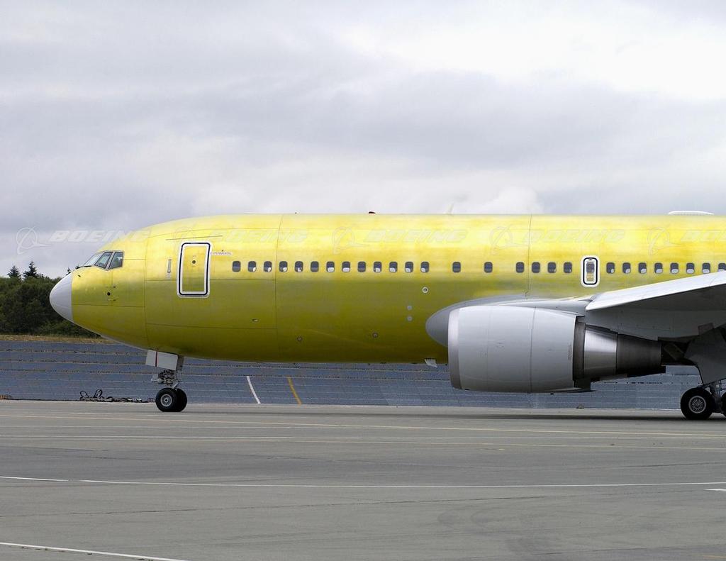 The first 767 Global Tanker prepares to depart Everett to undergo final modifications at Boeing's Wichita facility.