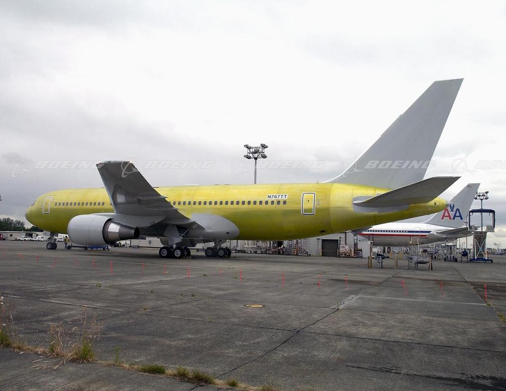 The first 767 Global Tanker prepares to depart Everett to undergo final modifications at Boeing's Wichita facility.