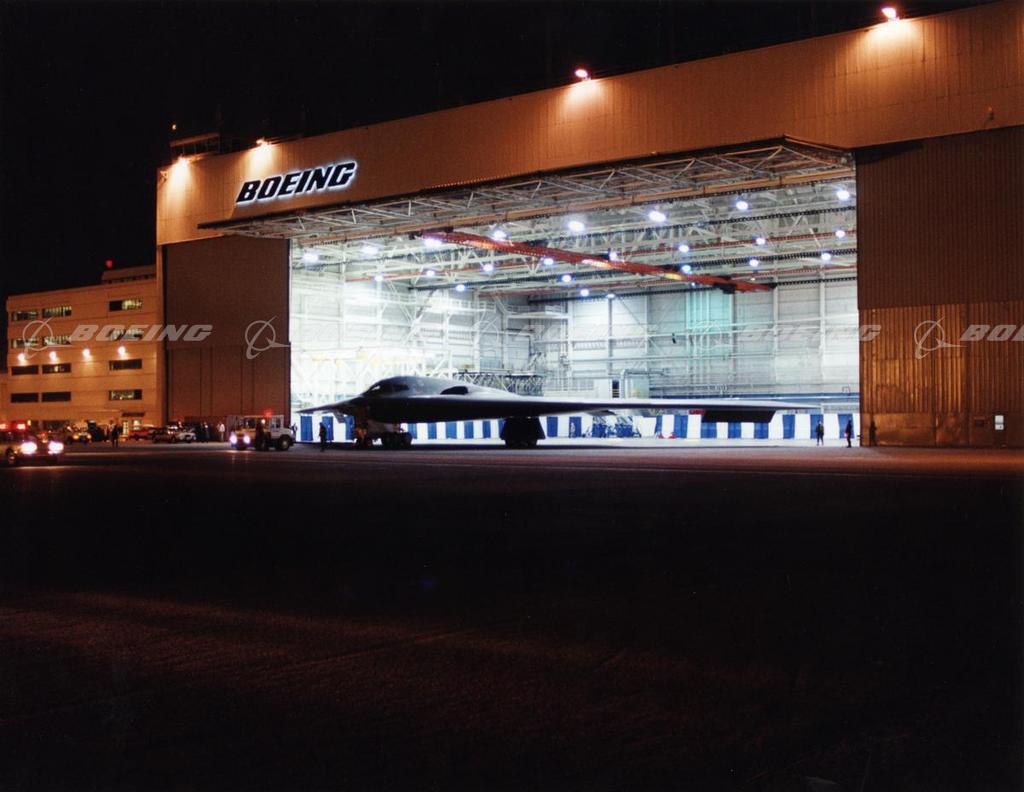 B-2 Spirit is Towed out of Boeing Field Hangar at Night