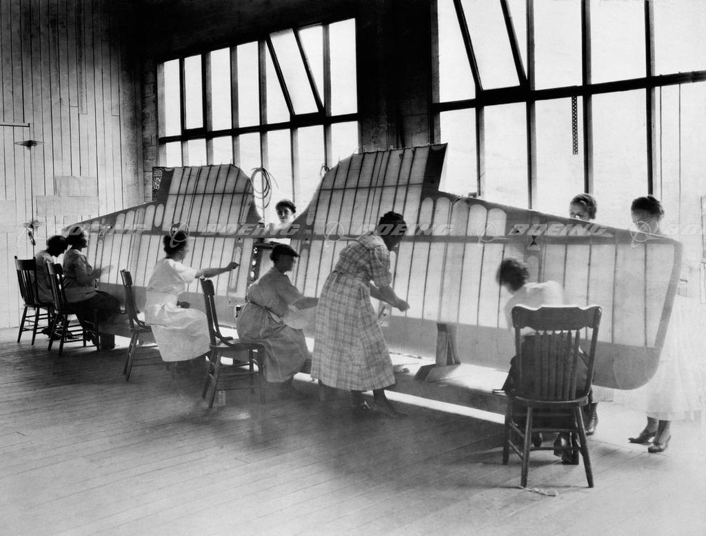 Boeing Factory Workers Sewing a MB-3A Wing