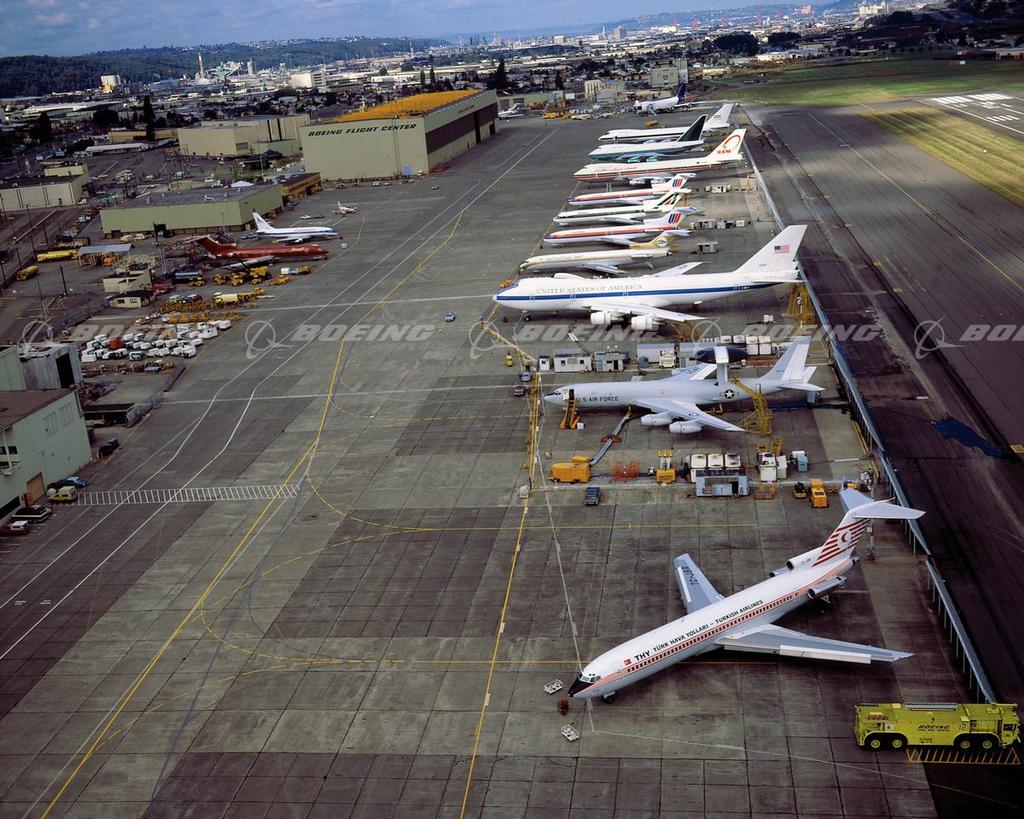 Boeing 7-Series Jets on the Flight Line at Boeing Field, July 1983