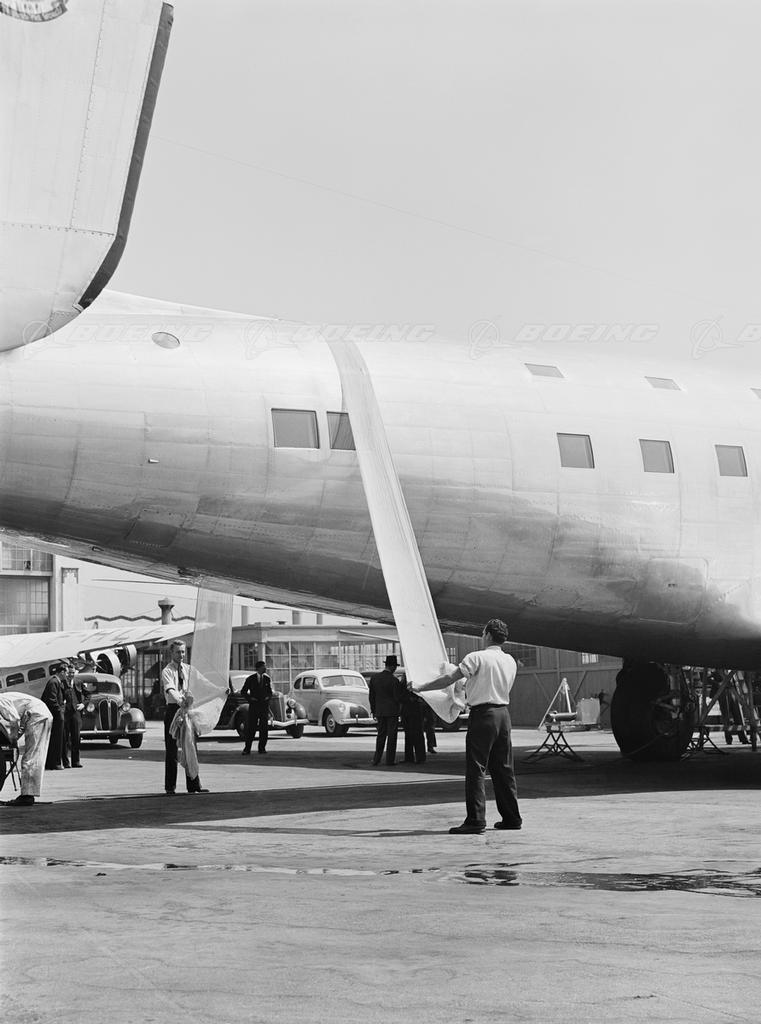 A Douglas "Rosie" Works in the Shadow of a C-47 Wing