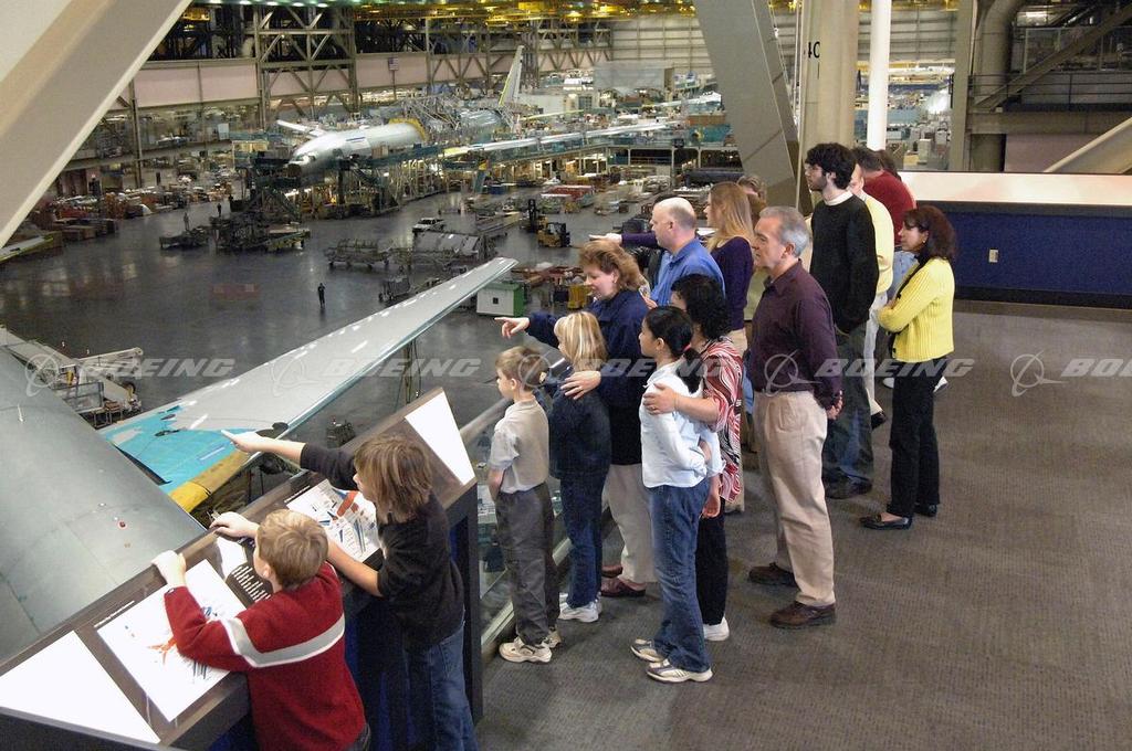 Visitors at the Everett Factory Tour Center Enjoy the View from the Balcony