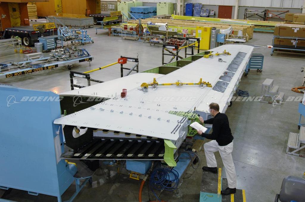 An assembly pattern jig at the Boeing composites manufacturing facility in Frederickson, Washington.
