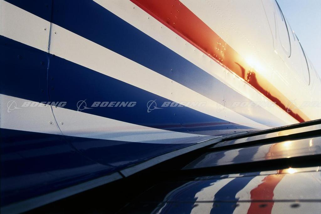 717-200 Red,White and Blue Livery Stripes Reflected on Wing, European Tour