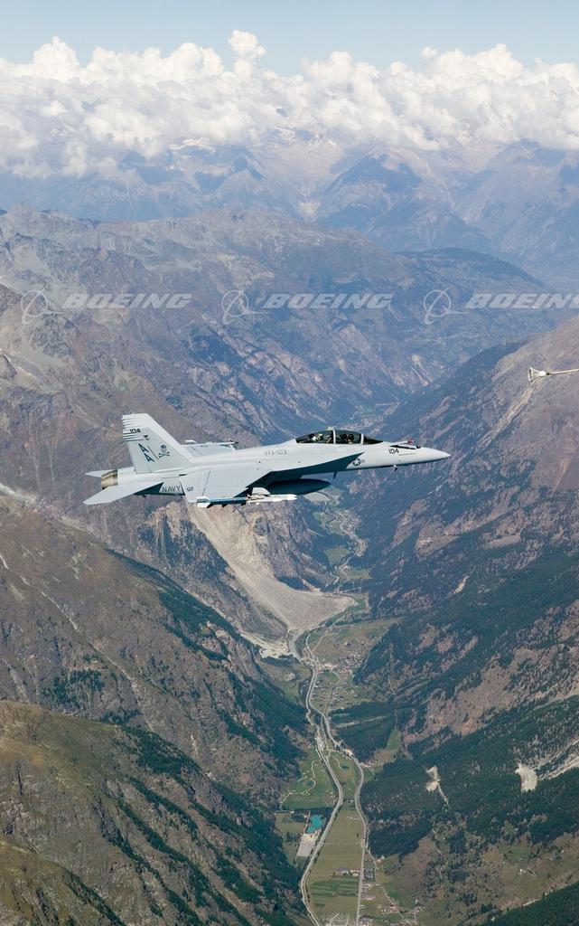 F/A-18E/F Super Hornet in Flight over Swiss Alps