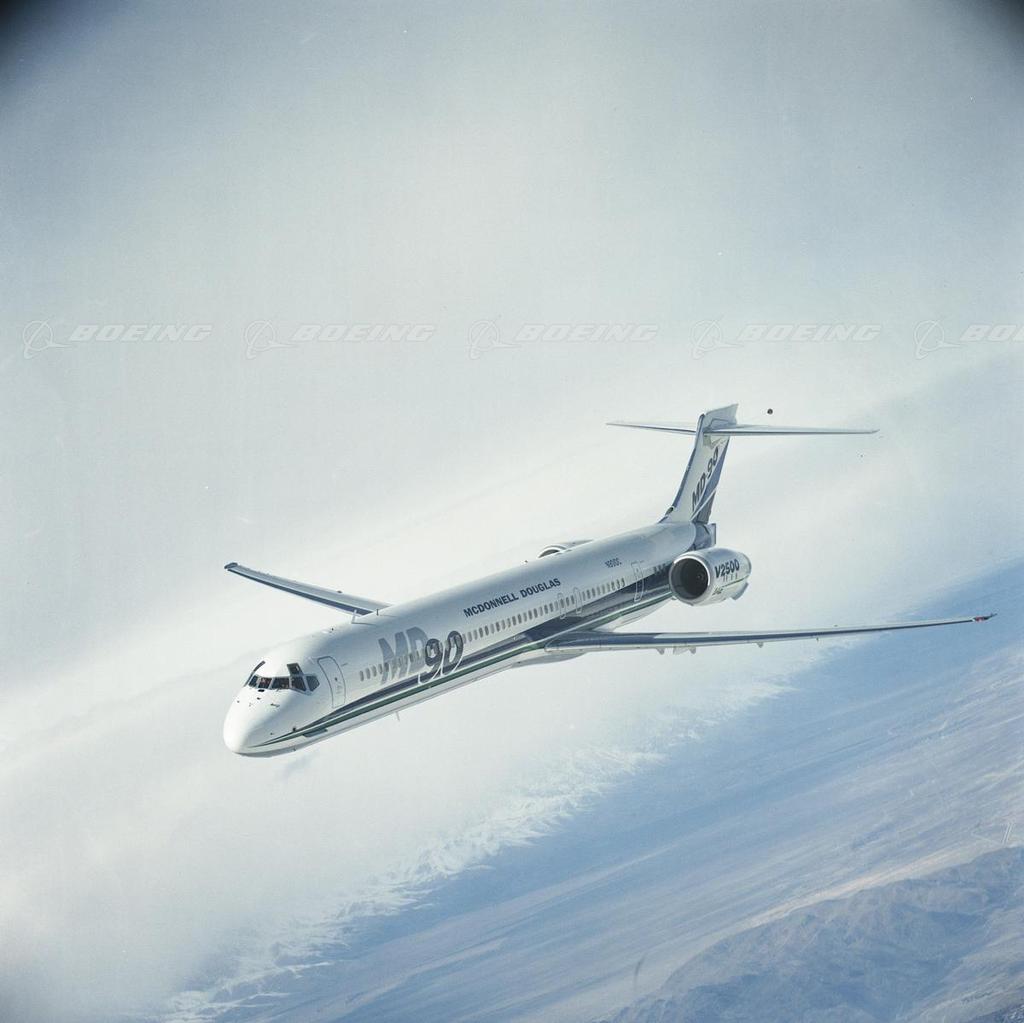 The graceful MD-90 achieves the passenger comfort normally associated with larger airplanes.