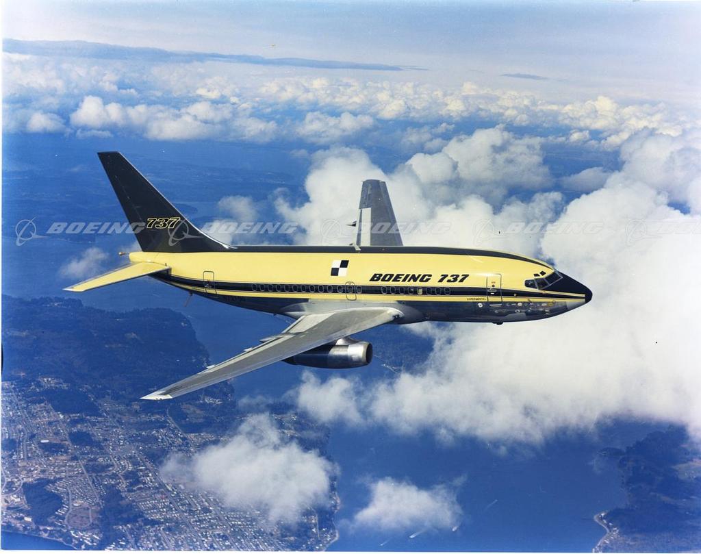 The Beginning of the World's Most Popular Jet Family: The first flight of the Boeing 737-100 occurred April 9, 1967. With pilots Brian Wygle and Lew Wallick at the controls, the airplane took off from Boeing Field in Seattle and flew for 2-1/2 hours before landing at Paine Field in Everett, Washington. The 737 was designed as a logical short-range airplane to complement larger 707 and 727 jetliners. The 737 was certified by the U.S. Federal Aviation Administration in December 1967 after more than 1,300 hours of flight testing by a six-airplane fleet. For the first time, certification included approval for automatic approaches in bad weather under Category II conditions-- defined as 100-foot ceilings and 1,200-foot forward visibility. The first 737-100 was delivered to Lufthansa December 28,1967, and began commercial revenue service on February 10, 1968. The last 737-100 model was produced in 1969 and delivered in November that same year. Interestingly, the last 737-100 delivered was actually the first 737 Boeing produced. The aircraft had been used by Boeing as a test airplane before being delivered to NASA on July 26, 1973, for use as a test and training aircraft by the space agency. All told, Boeing delivered 30 737-100s.