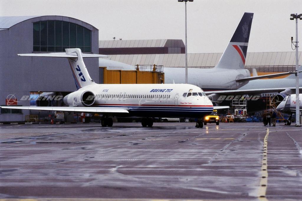 The 717 is a full-size twinjet designed specifically for the short-range, 100-seat regional airline market and is a very efficient and exceptionally quiet airplane. Its advanced technologies and rugged simplicity of design allow it quick turnaround time at a wide range of airports, so crew and passengers spend less time on the ground. It makes effective use of today's technology to lower operating costs, reduce noise and emissions, and provide big jet comfort. The airplane, formerly MD-95, was designated the Boeing 717 following the merger of McDonnell Douglas and The Boeing Company in 1997. In early 2005, after careful assessment of the challenging 100-seat market, Boeing announced that it will conclude 717 production in 2006 after delivering on current customer commitments.