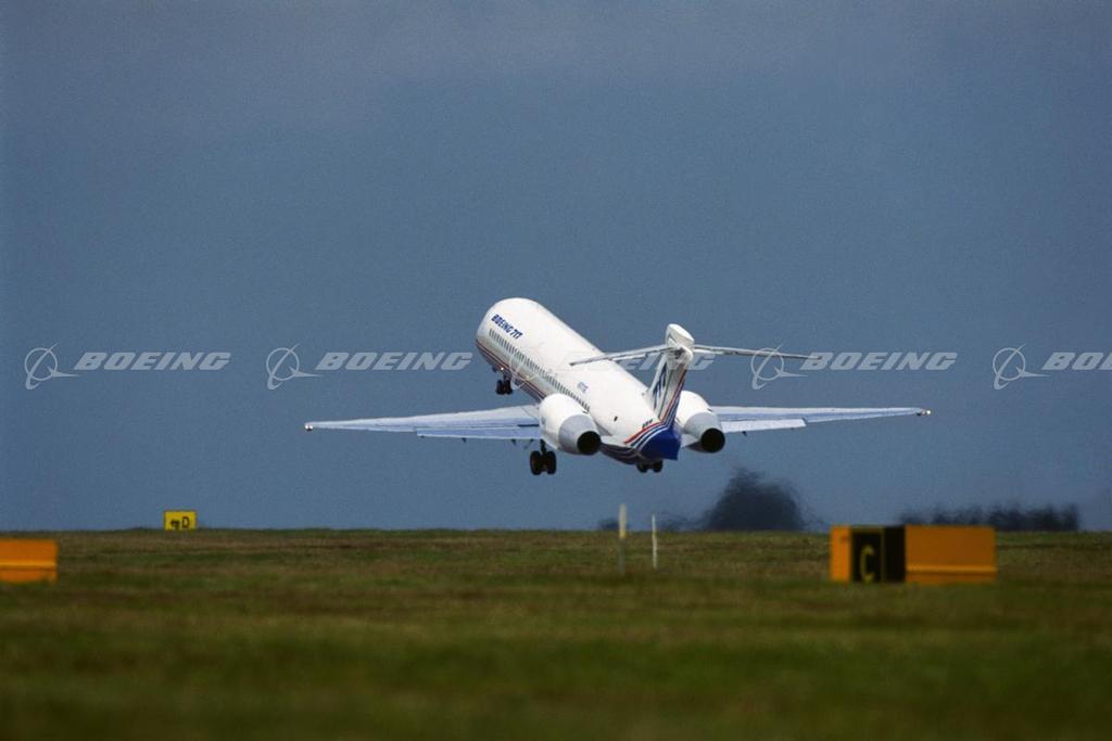The 717 is a full-size twinjet designed specifically for the short-range, 100-seat regional airline market and is a very efficient and exceptionally quiet airplane. Its advanced technologies and rugged simplicity of design allow it quick turnaround time at a wide range of airports, so crew and passengers spend less time on the ground. It makes effective use of today's technology to lower operating costs, reduce noise and emissions, and provide big jet comfort. The airplane, formerly MD-95, was designated the Boeing 717 following the merger of McDonnell Douglas and The Boeing Company in 1997. In early 2005, after careful assessment of the challenging 100-seat market, Boeing announced that it will conclude 717 production in 2006 after delivering on current customer commitments.