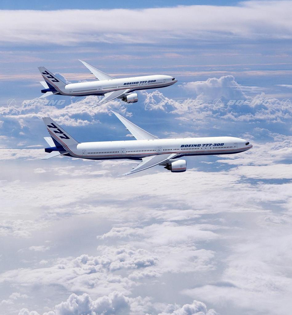 Boeing BBJ 777-200LR and BBJ 777-300ER in Formation