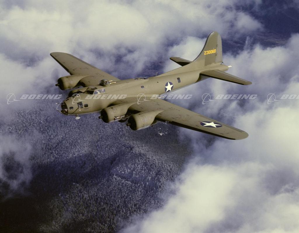 As the storm of World War II shook the world, Boeing-designed B-17 bombers darkened European skies, dropping 640,036 bombs on designated targets. Described by General H. H. Hap Arnold, as the backbone of our worldwide aerial offensive, the B-17 Flying Fortress served in every World War II combat zone. Boeing, Douglas, and Lockheed Vega produced 12,731 B-17s at plants across the country, and the four-engine bombers became legendary for their ability to stay in the air after taking brutal poundings.