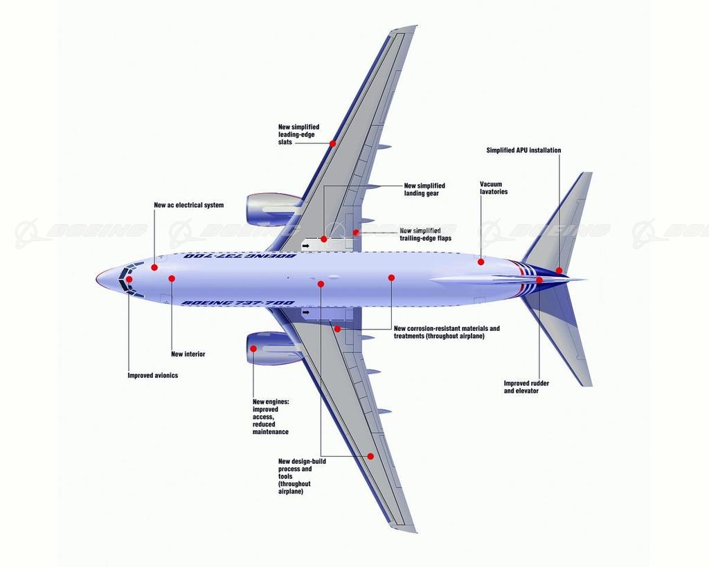 The best-selling Boeing 737 started as a smaller, short-range jet, and 19 737-200s were sold as T-43 Air Force trainers. Models 737-300, -400, and -500 were followed by the Next-Generation 737-600, -700, -800, -900, and the luxurious Boeing Business Jet. The Boeing Next-Generation 737s are the most advanced single-aisle airplanes in the market today. While these new airplanes retain the characteristics that made 737 classics so popular worldwide ~ reliable, simple and economical to operate ~ they underwent dramatic revisions. The 737-700 also is used for Project Wedgetail, an airborne early warning and control system for the Royal Australian Air Force, and for the U.S. Navy's C-40A Navy-Unique Fleet Essential Aircraft (NUFEA)