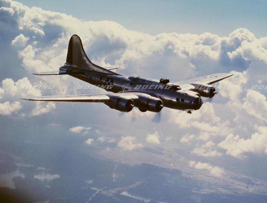 The Boeing B-17E of 1941. The B-17E was the first "offensive" model of the Flying Fortress family. It first flew on September 5, 1941, and in the ensuing year many hundreds were produced at Boeing, Douglas and Lockheed. Among the major changes were a longer fuselage, increased fin area, dorsal and ventral power turrets, tail gun position and increased nose armament. Gross weight was increased to 60,000 pounds, and top speed to 325 mph. A total of 512 was built.