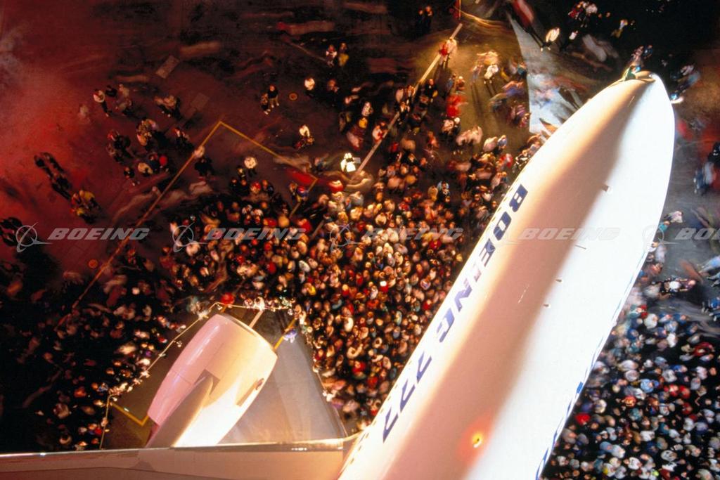 The wide-body Model 777 was the first commercial jet that was 100 percent digitally designed using three-dimensional solids technology. It earned the Collier Trophy for top aeronautical achievement in 1996. The twinjet commercial transport uses fuel efficiently, and its comfortable cabin is very popular with passengers. The 777-200 can take 305 passengers 5,995 miles. The 777-300 can carry 368 passengers 6,899 miles. Launched in February 2000, the 777-200LR and 777-300ER will fly 9,420 or 7,880 nautical miles, respectively.