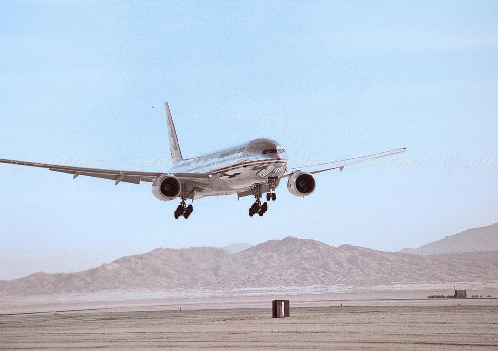A Boeing 777-300ER (Extended Range) on the Desert Runway at Edwards Air Force Base, Calif.
