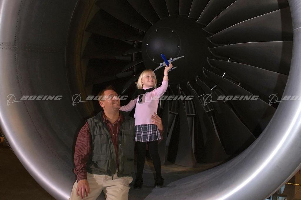 A Young Visitor to the Future of Flight stands Inside a Pratt & Whitney 777 Engine