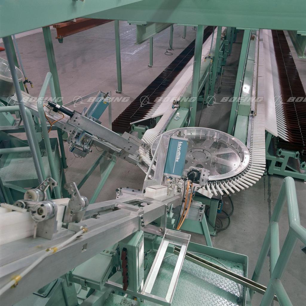 In the course of aircraft manufacturing, a large number of holes are drilled in varying sizes. Drill bits are used until they become dull, and then they are resharpened. Boeing's Auburn facility in the late 1980s sharpened approximately 50,000 used drill bits weekly. To facilitate the organization of this extreme number of drill bits that required resharpening, Boeing developed an automated drill sorting system in the 1980s.