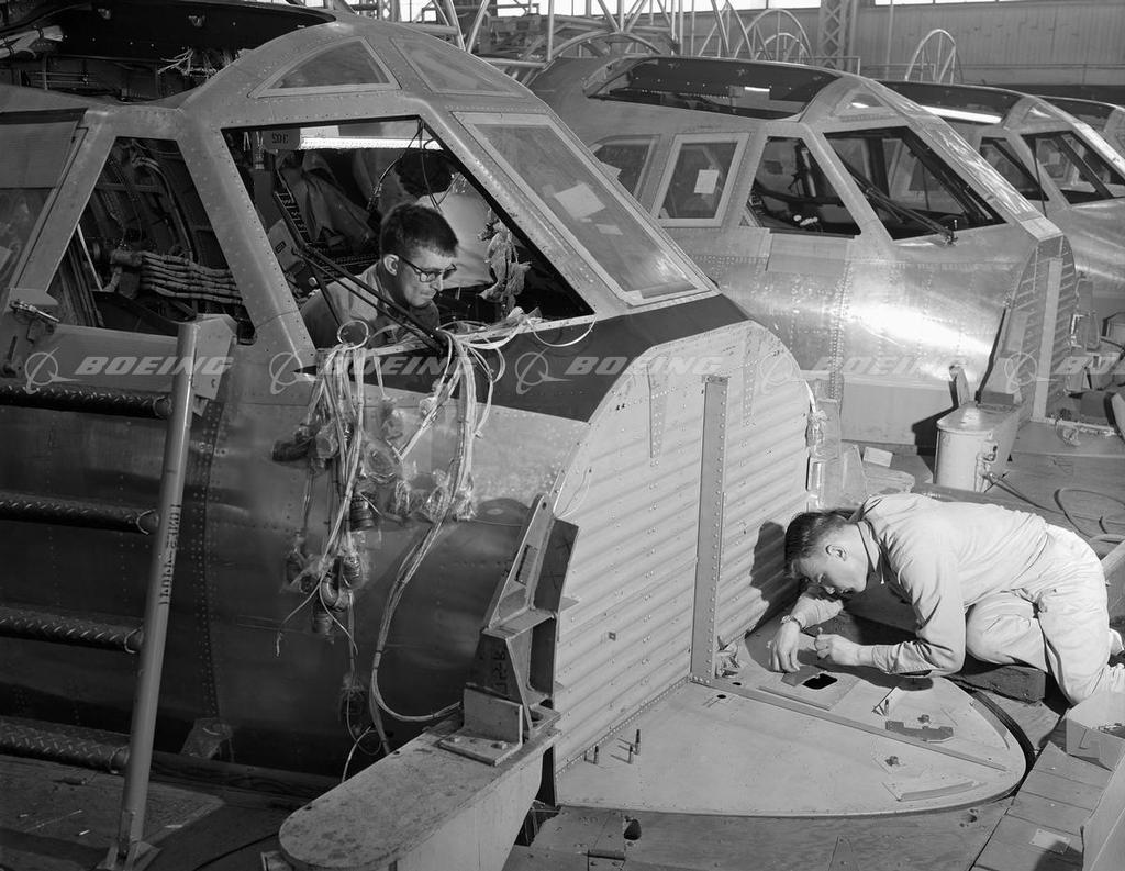 A Douglas "Rosie" in Long Beach Rivets a Boeing B-17 Tail