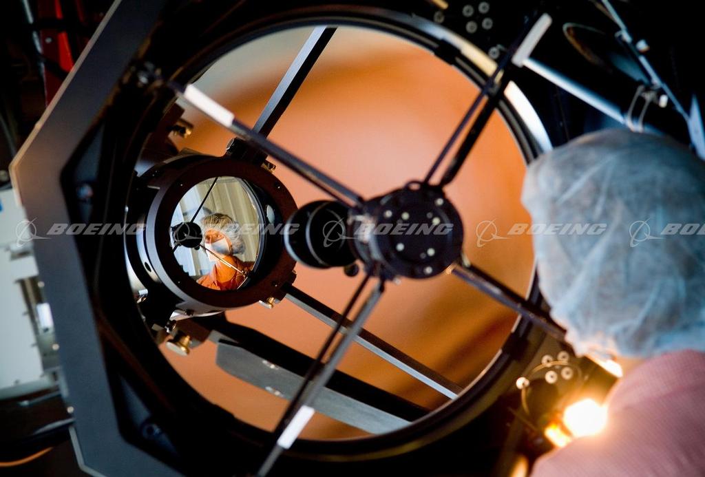 Boeing SVS Technician Inspects Airborne Relay Mirror System (ARMS)