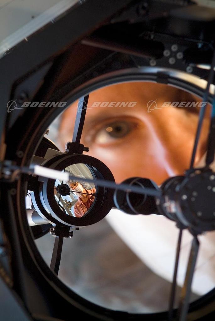 Boeing SVS Technician Inspects Airborne Relay Mirror System (ARMS)