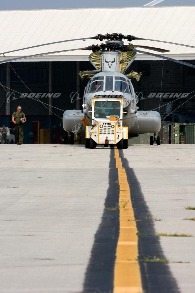 CH-46E Sea Knight is Towed Out of a Maintenance Hangar