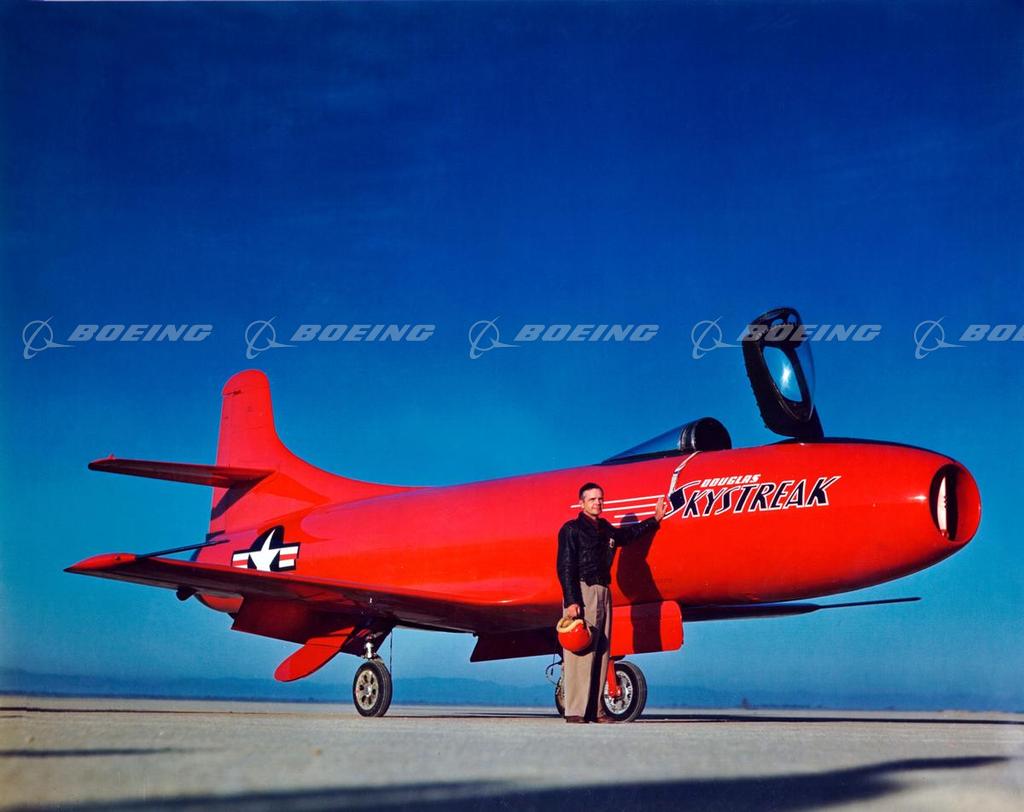 With a bright gloss-red finish to assist invisual tracking, and not being much more than a long tube with wings, the D-558-1 earned affectionate nicknames such as “The Flying Stove Pipe” and “The Crimson Test Tube.”