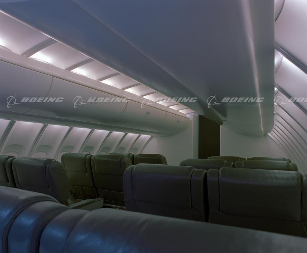 Boeing's 747-400 Interior Solutions are part of Commerical Aviation Services' fleet enhancements that can help airlines modify aircraft configurations, enhance fleet performance and improve cabin amenities. 747-400 Interior Solutions features blended main cabin ceilings and center stowbins; softer, smoother-contoured surfaces that help reduce shadowing and provide a more open feeling in the cabin, resulting in an interior similar to the modern, graceful lines of the 777 interior.