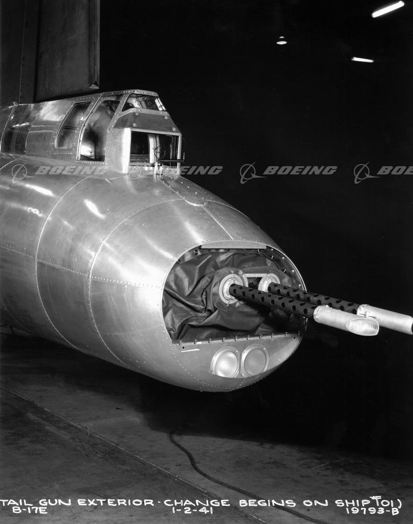 The B-17E tail was enlarged to house a tail gun compartment outfitted with a pair of .50 caliber machine guns.