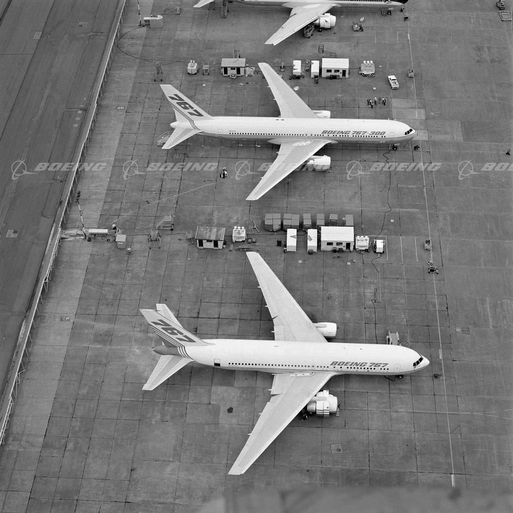 The first 767 -- still owned by Boeing -- was completed and rolled out of the Boeing plant in Everett, Washington on Aug. 4, 1981. First flight was Sept. 26, 1981. The 767-300 program got under way in September 1983, and first flight was January 30, 1986.