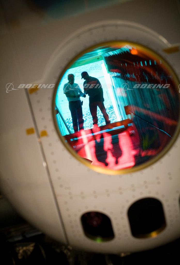 Boeing SVS Technicians Reflected in the Turret of the Advanced Tactical Laser (ATL)