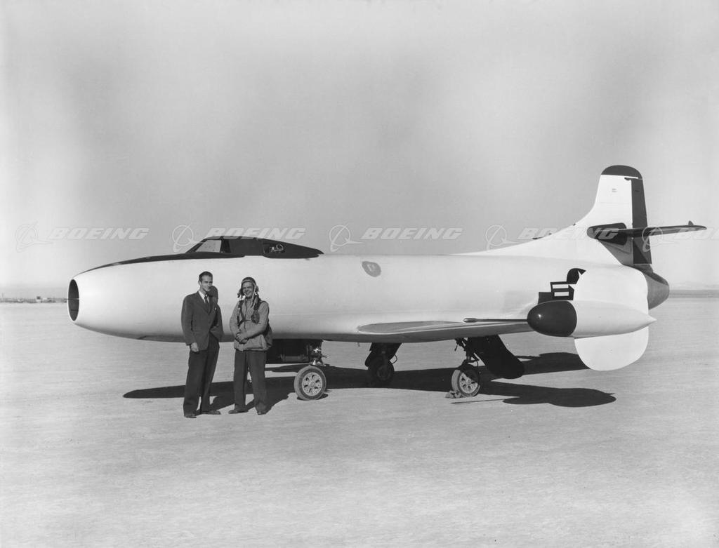 Pilots with D-558-1 Skystreak Outfitted with Wingtip Tanks