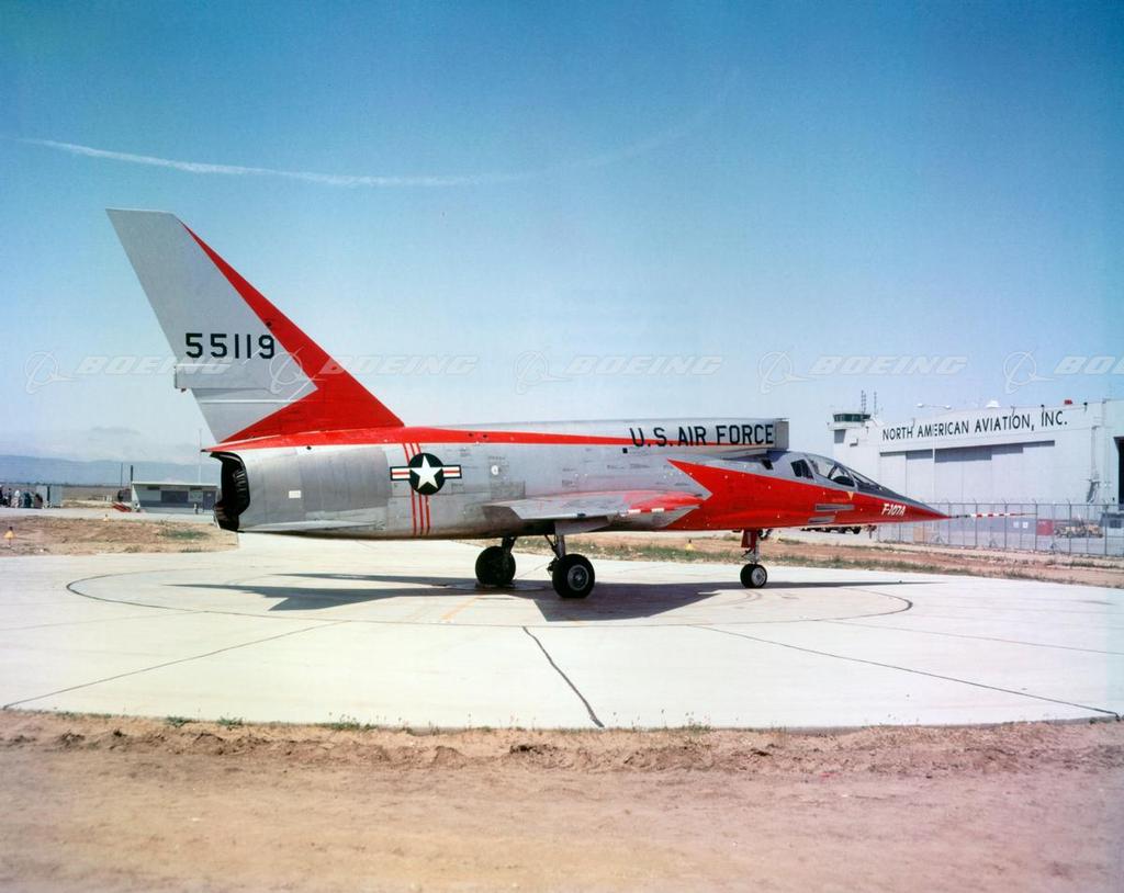 After the North American F-100 Super Sabre was in production, the design was reconfigured to meet Air Force requirements for a fighter-bomber capable of delivering a nuclear payload at Mach 2 speeds. The first versions were designated F-100B, but when the U.S. Air Force ordered prototypes, the designation changed to YF-107A (NA-212).