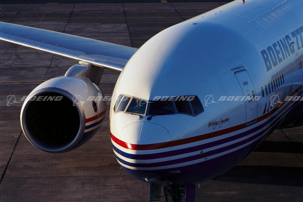 The Model 777, the first entirely new Boeing airplane in more than a decade, was the first jetliner to be 100 percent digitally designed using three-dimensional computer graphics. Throughout the design process, the airplane was preassembled on the computer, eliminating the need for a costly, full-scale mock-up. The 777 is the widest, most spacious airplane in its class and includes improvements in airfoil technology, flight deck design, passenger comfort and interior flexibility. Its greater payload and range capability result in lower operating costs to airlines, and its standard equipment includes many features that are optional on other airliners. The airplane is larger than all other twinjet or trijet airplanes but smaller than the 747. It brings the twin-engine economic advantage to medium- and long-range markets. The 777 currently is available in five models: 777-200, 777-200ER (extended range), 777-200LR (longer-range), 777-300 and the 777-300ER. The 777 is the first airplane to have a rose named after it. The deep purple-red rose with a citrus-like fragrance was developed by Olympia, Wash., Western Independent Nurseries.