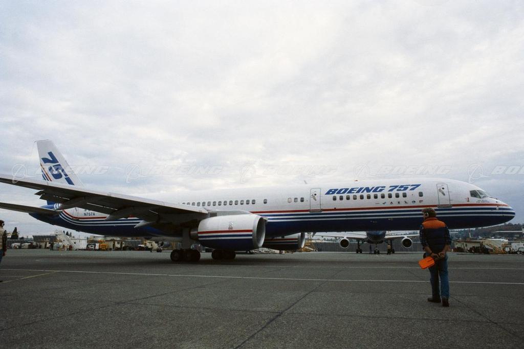 The twin-engine, medium-range Boeing 757 commercial transport first flew Feb. 19, 1982 and is up to 80 percent more fuel efficient than the 727s it was designed to replace but retains the 727's short-field capability. The 757-200, also offered as a freighter, can carry 239 passengers, in two classes, up to 4,520 miles. In September 1996, Boeing launched the 4,000-mile-range 757-300, a stretched model that seats from 243 to 279 passengers. By 1999 Boeing had delivered more than 1,000 757s. Four 757s were modified as replacements for the older 707-based VC-137 executive transports for government officials and designated C-32As.